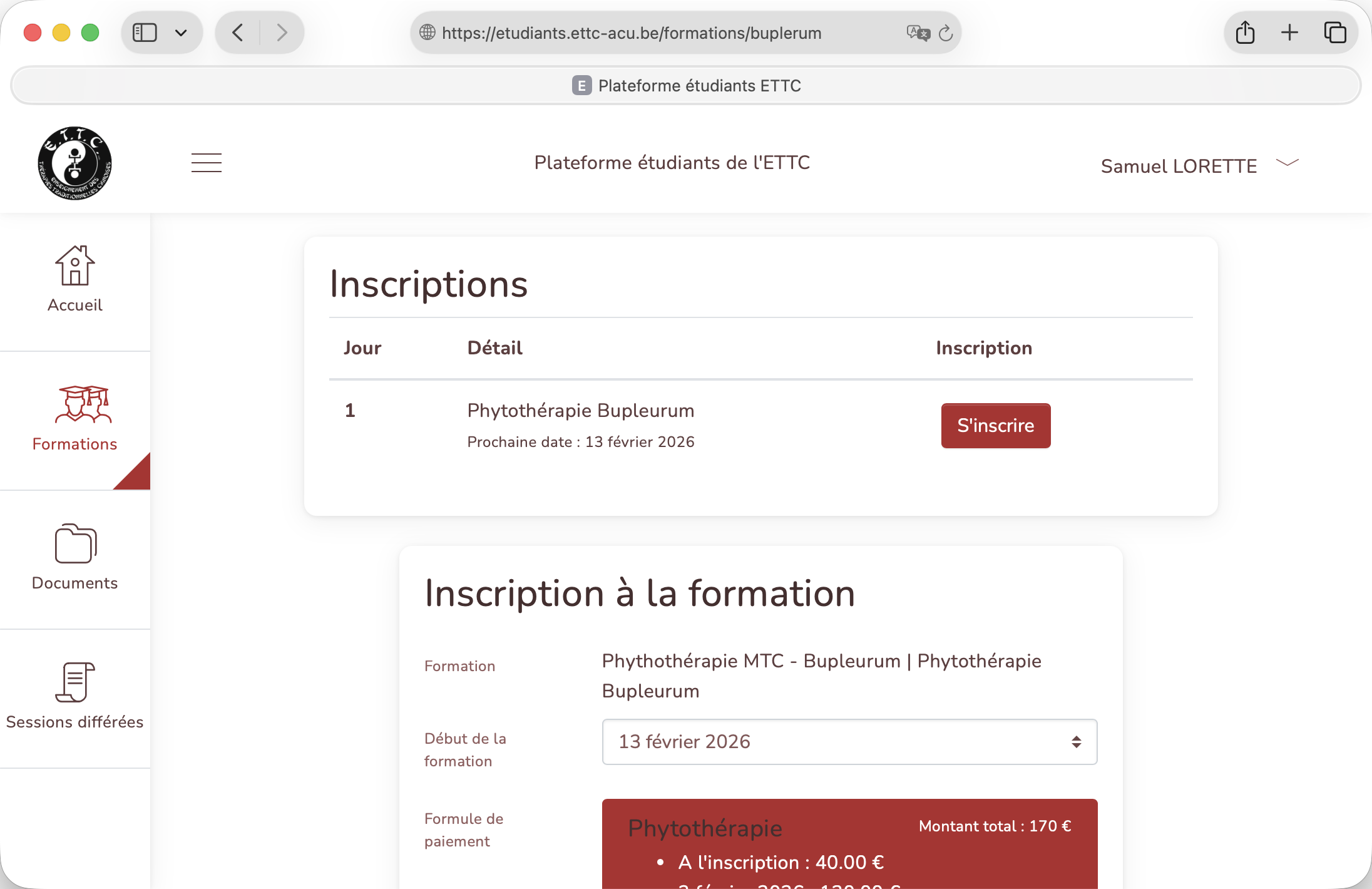 Inscription à une formation en ligne.